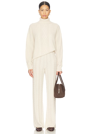 Rorie Cable Knit Hoodie in Blanc White